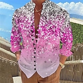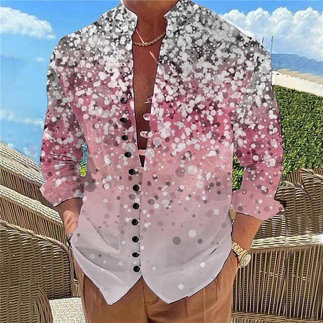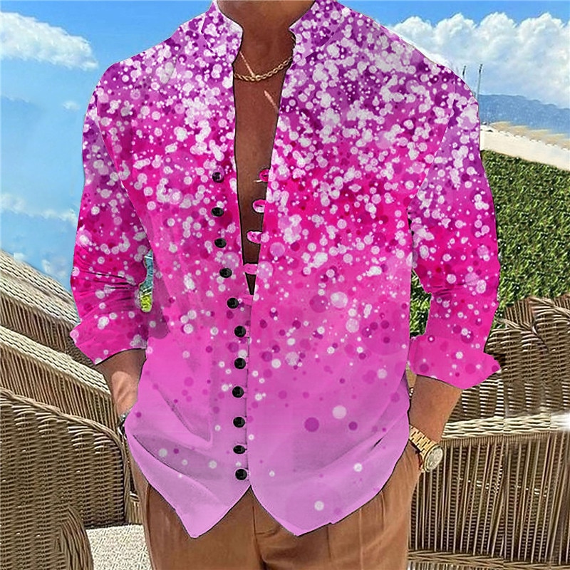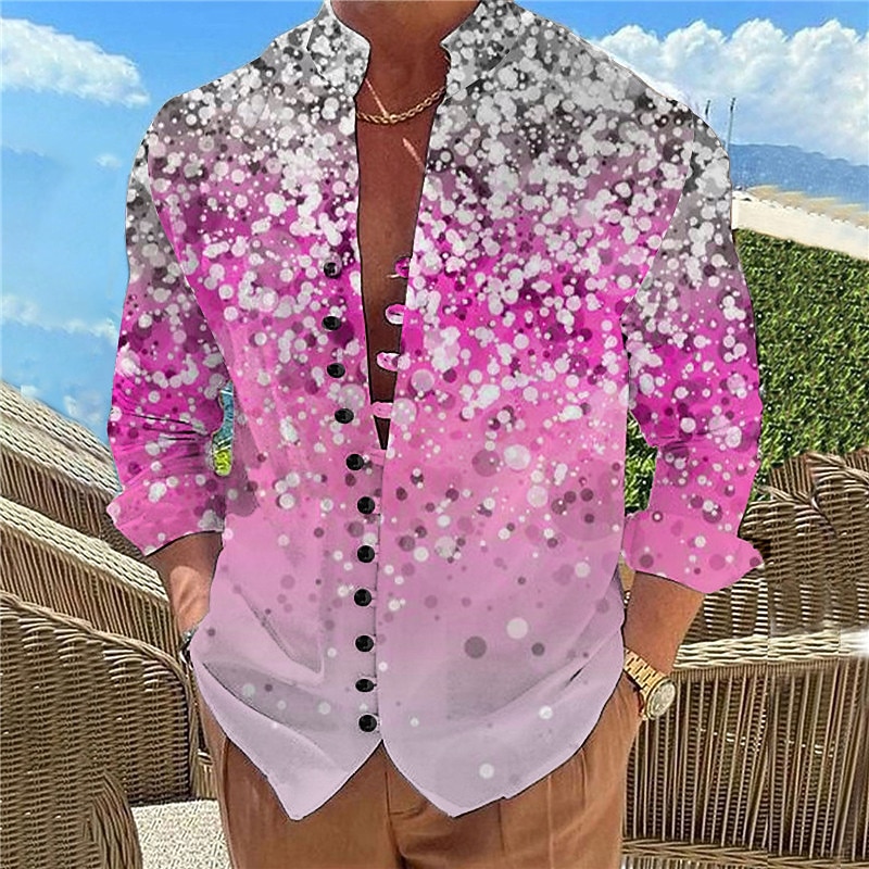 More information about Men's Color Gradient Shirt Button Up Shirt Long Sleeve Casual Daily Wear Going out Weekend Spring & Summer Standing Collar Print Button-Down Light Pink Yellow Pink Purple Fuchsia