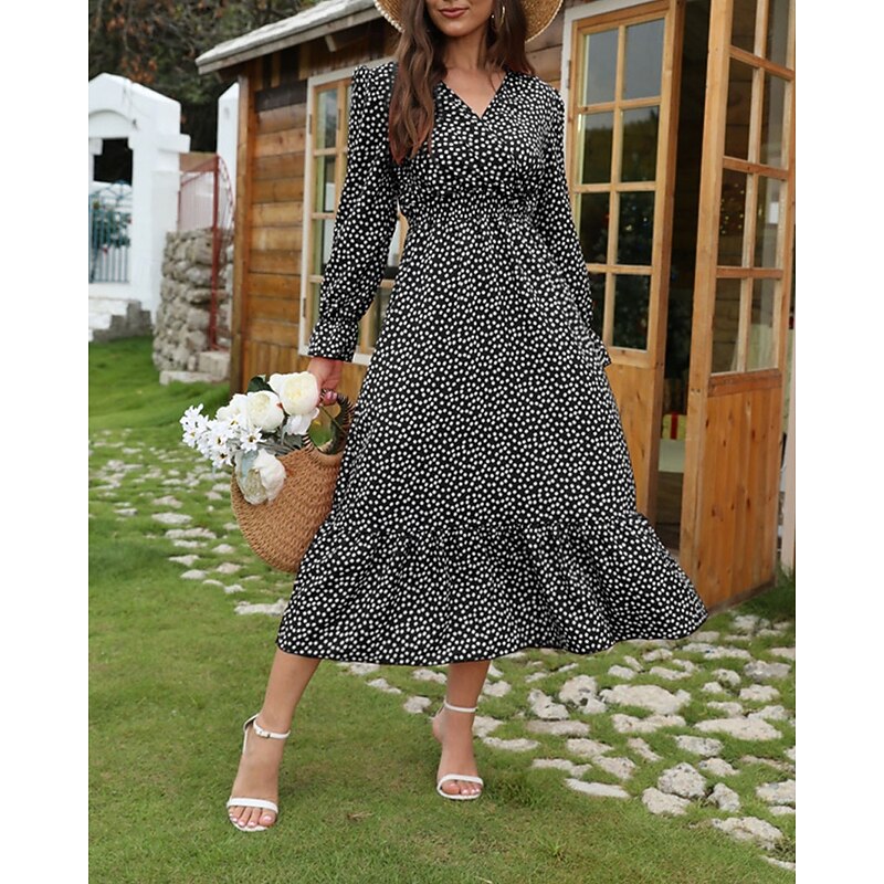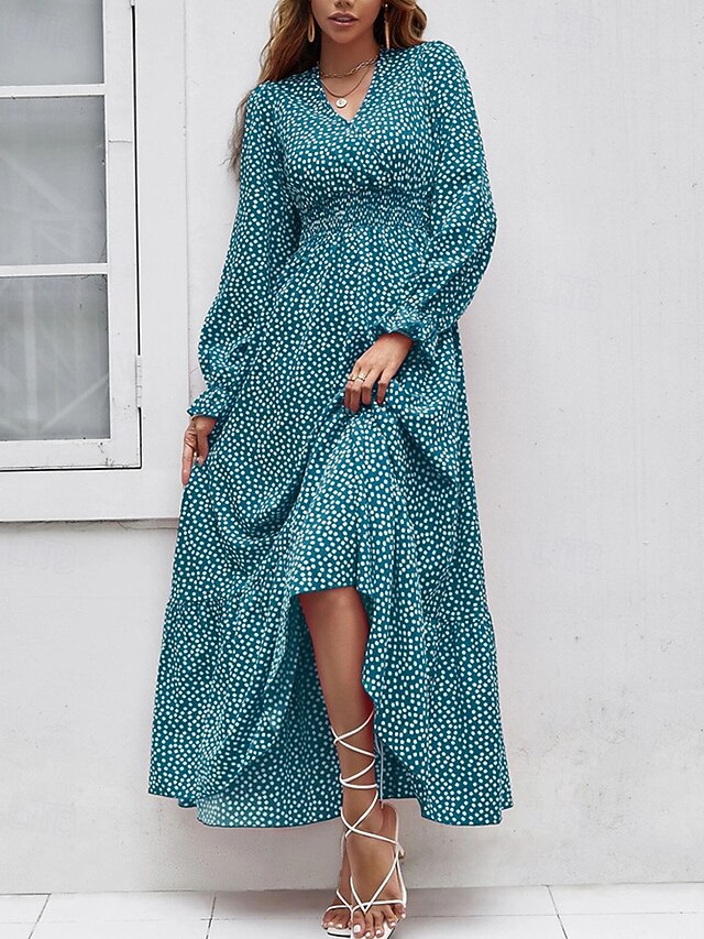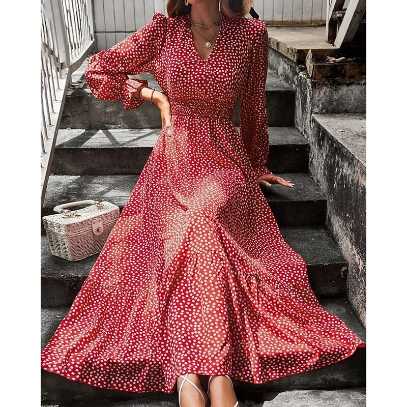 Women's Long Dress Maxi Dress Casual Dress Print Dress Fashion Modern Daily Beach Weekend Regular Fit Flower Long Sleeve V Neck Black Red Blue Green Summer Spring Fall 22