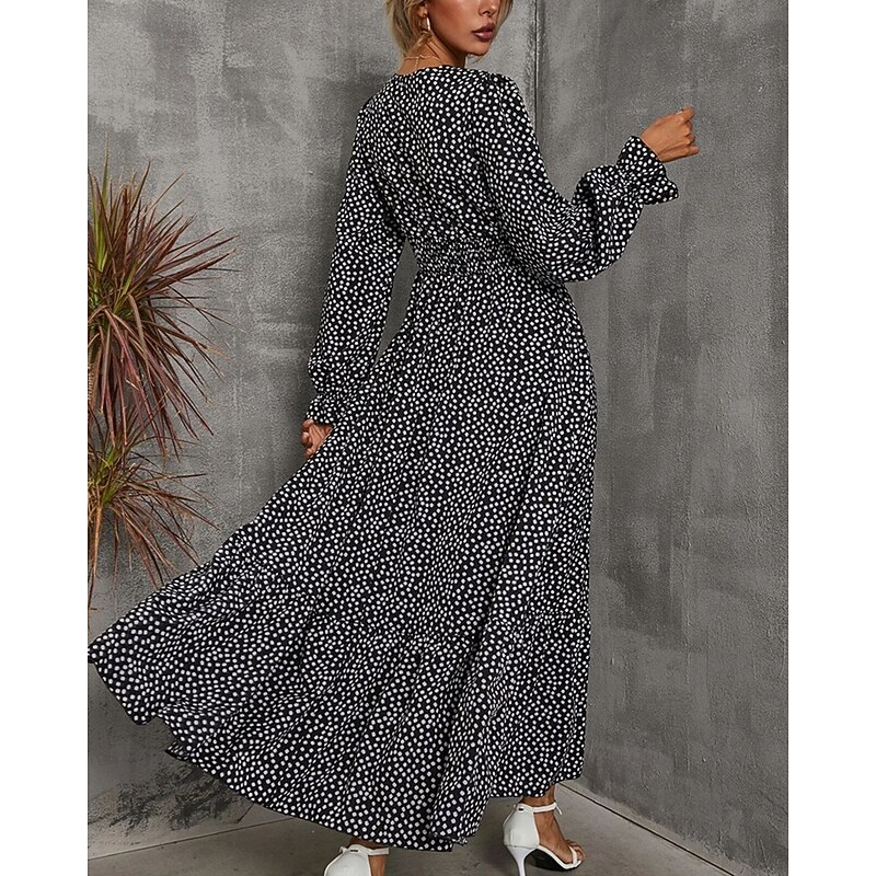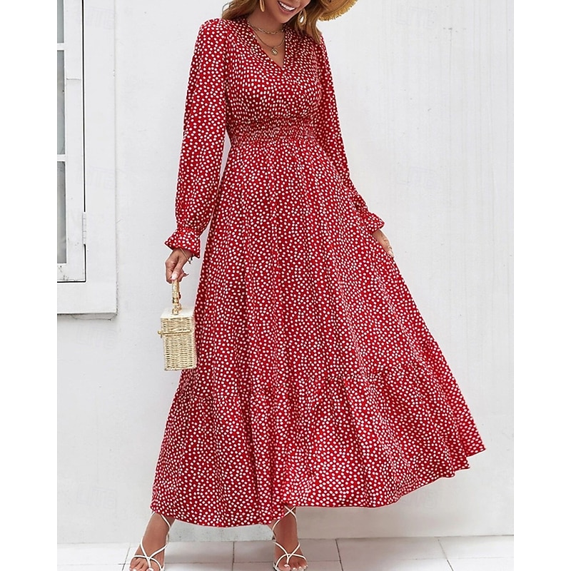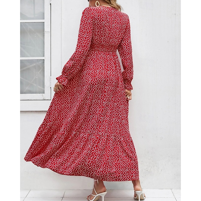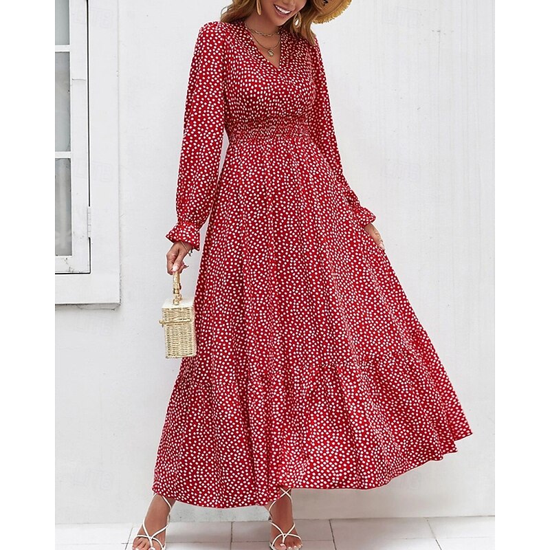 Women's Long Dress Maxi Dress Casual Dress Print Dress Fashion Modern Daily Beach Weekend Regular Fit Flower Long Sleeve V Neck Black Red Blue Green Summer Spring Fall 18