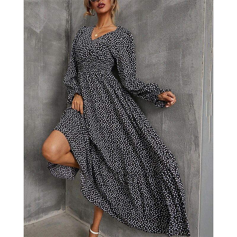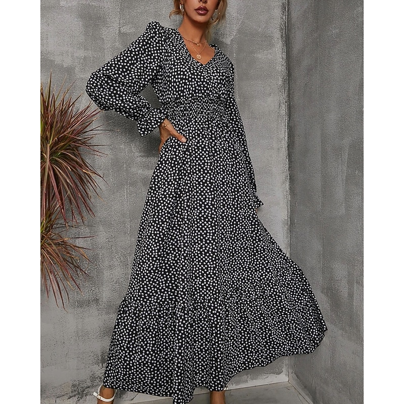 More information about Women's Long Dress Maxi Dress Casual Dress Print Dress Fashion Modern Daily Beach Weekend Regular Fit Flower Long Sleeve V Neck Black Red Blue Green Summer Spring Fall