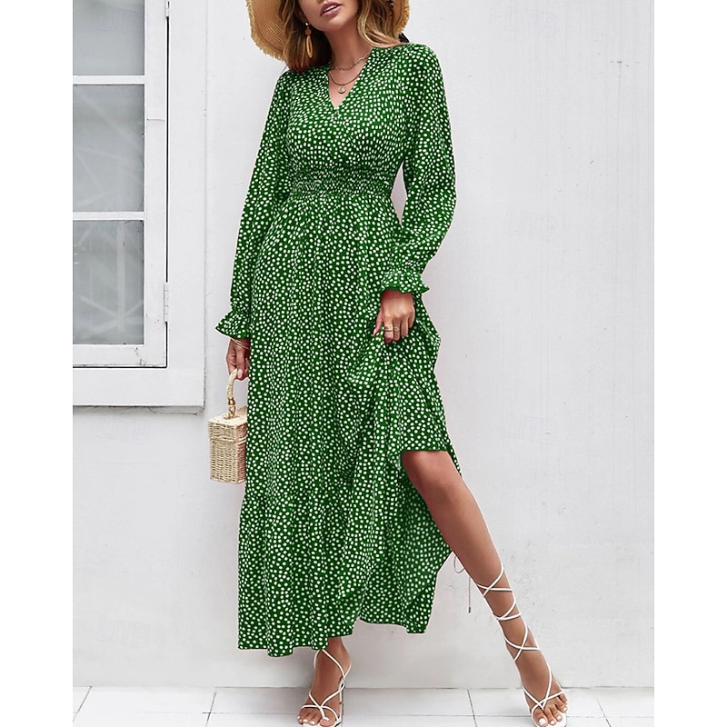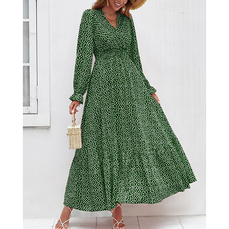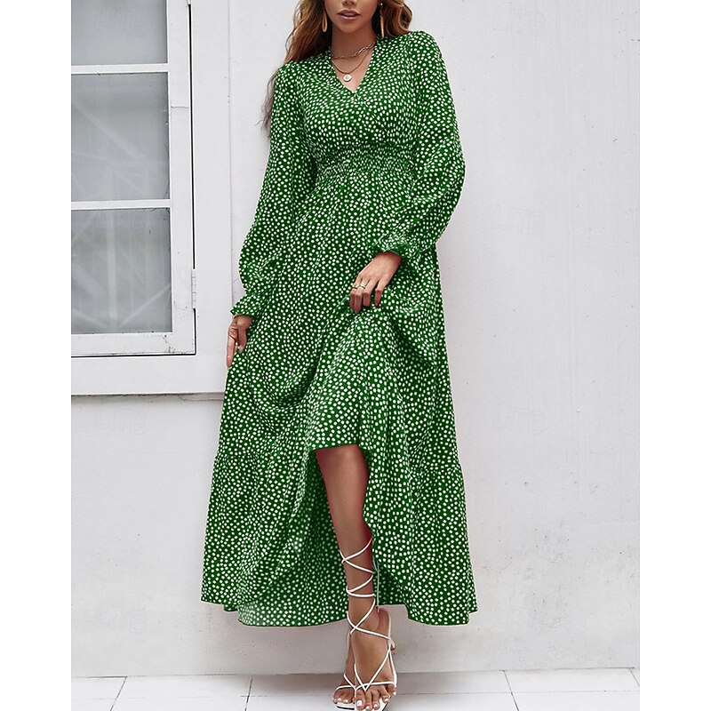 HOT ! Women's Long Dress Maxi Dress Casual Dress Print Dress Fashion Modern Daily Beach Weekend Regular Fit Flower Long Sleeve V Neck Black Red Blue Green Summer Spring Fall