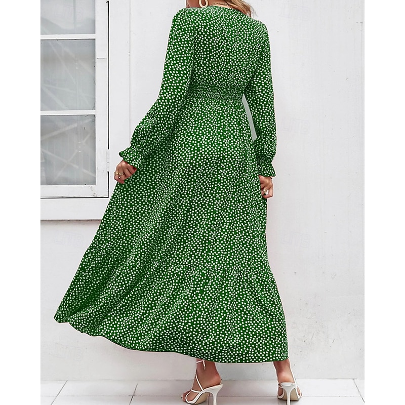 Women's Long Dress Maxi Dress Casual Dress Print Dress Fashion Modern Daily Beach Weekend Regular Fit Flower Long Sleeve V Neck Black Red Blue Green Summer Spring Fall 1