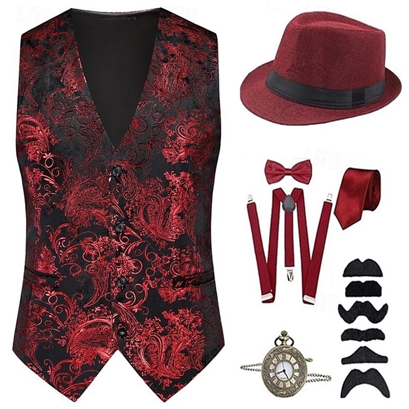 1920s Vintage Inspired The Great Gatsby Party Costume Accesories Set Sleeveless Printing Collarless Fancy Dress Men's Halloween Party & Evening Casual Daily Adults' Vest Hat All Seasons 6
