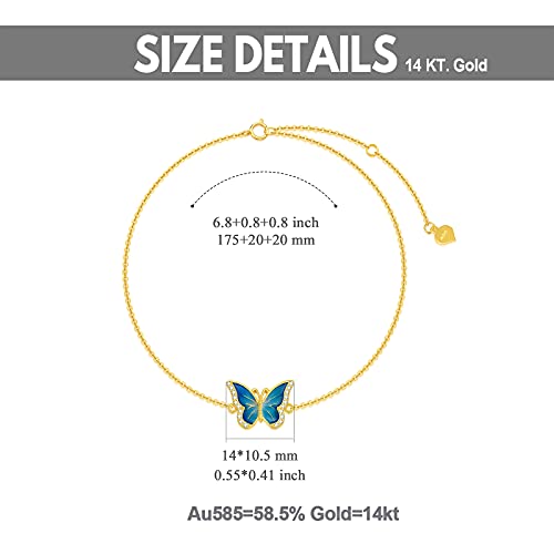SISGEM Real 14k Gold Blue Butterfly Bracelet for Women, Solid 14 Karat Gold Animal Lover Wrist Jewelry Gifts for Her, 6.8-8.4 1