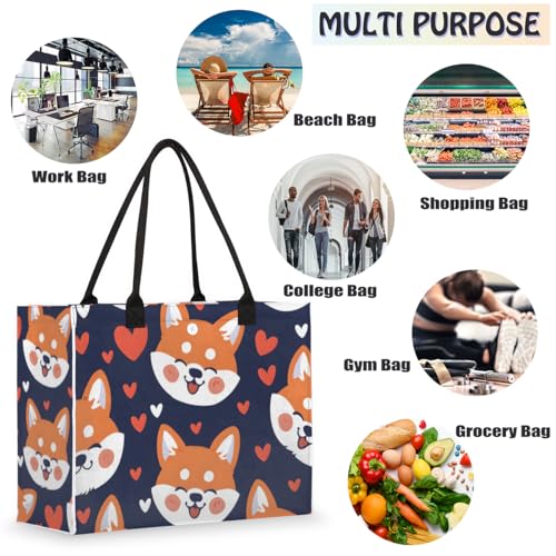 HOT ! Cute Corgi Happy Tote Bag for Women Large Beach Bag Reusable Tote Bags for Work Travel Beach Shopping