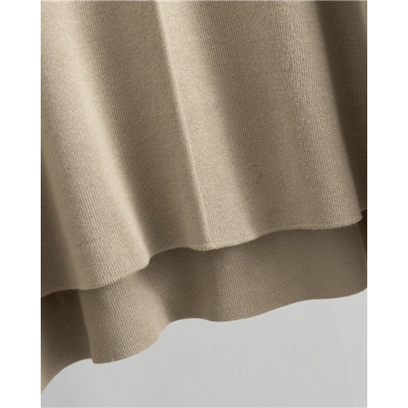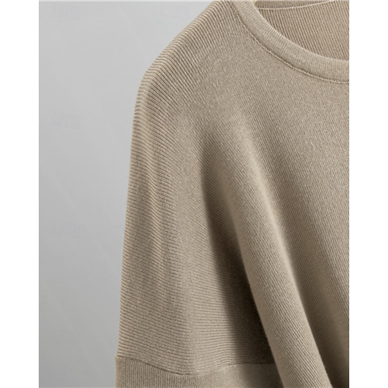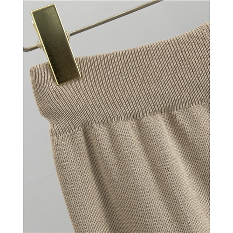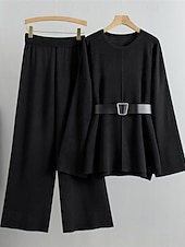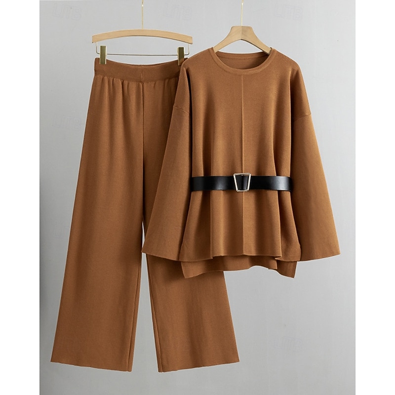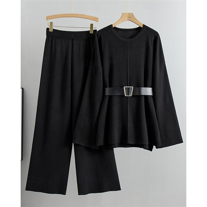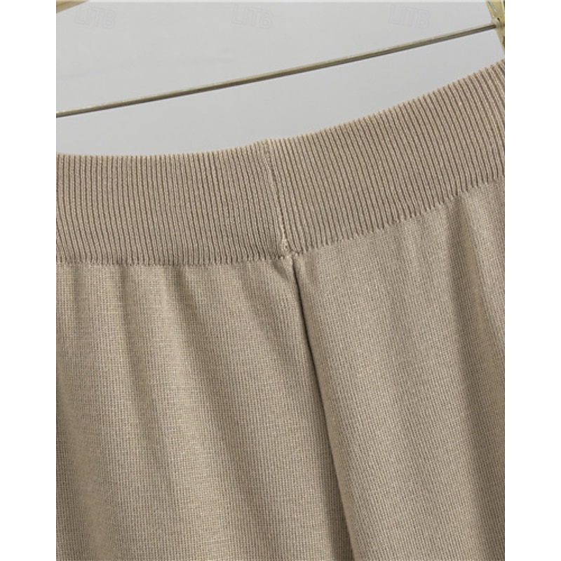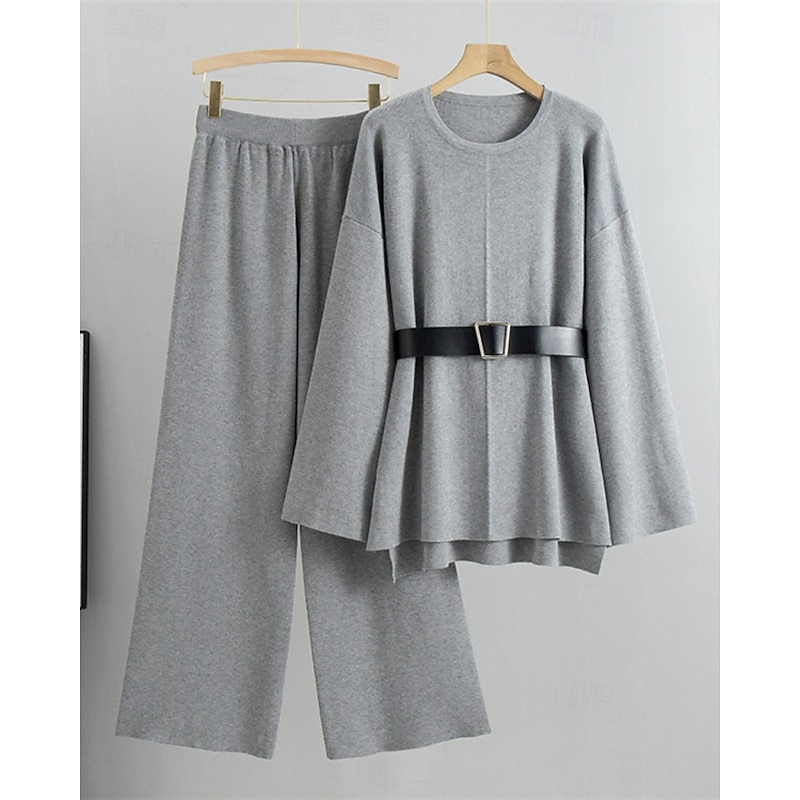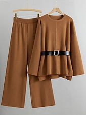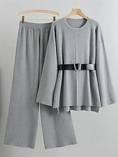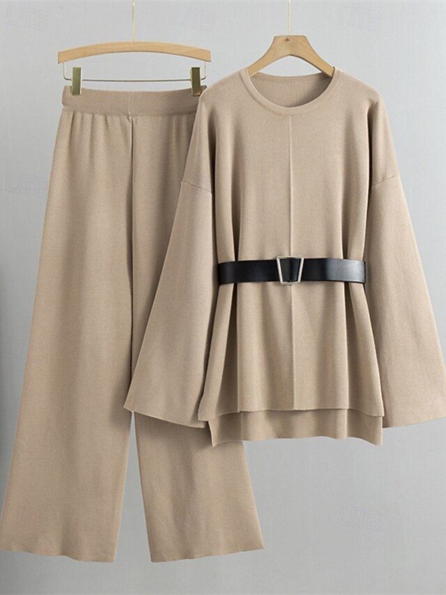 More information about Women's Sweater Sweater Set Streetwear Casual Solid Color Crew Neck Knitted Asymmetric Hem Long Sleeve Regular Tops Knit Daily Holiday Going out Black Khaki Fall Winter