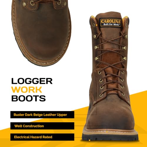 Carolina Men's 8" Poplar Comp Toe Logger, Industrial & Construction Boots, Oil & Slip Resistant, EH Rated 4