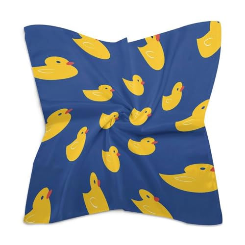 HOT ! Yellow Rubber Ducks Pattern Fashion Head Scarf for Women Silk Like Bandana Kerchief Satin Square Scarves Gifts