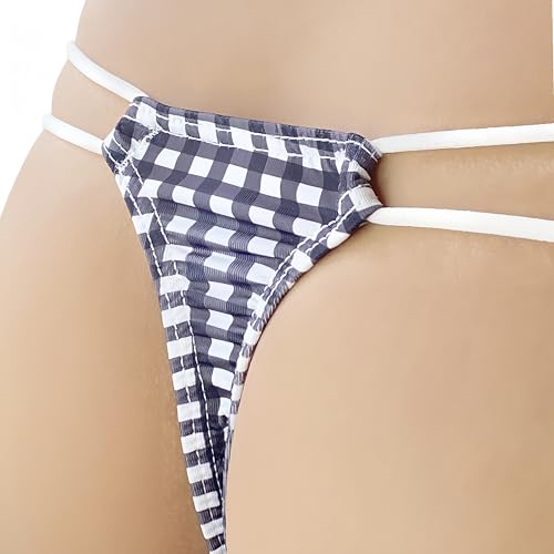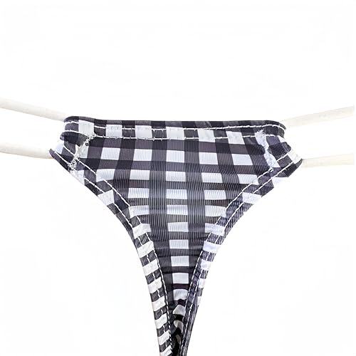 • This sexy, breathable and seductive thong is connected by two white elastic straps. U-shaped bag is a black and white check pattern, the bag space is large enough, and it is very flexible. The elastic bands on both sides are very elastic and can fit more body types.