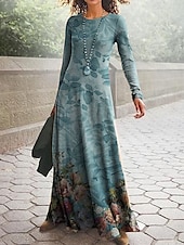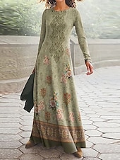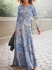 More information about Women's Maxi Dress Vintage Bohemian A Line Dress Crew Neck Long Sleeve Casual Daily Regular Fit Graphic Paisley Blue Dark Green Green Spring Fall Winter