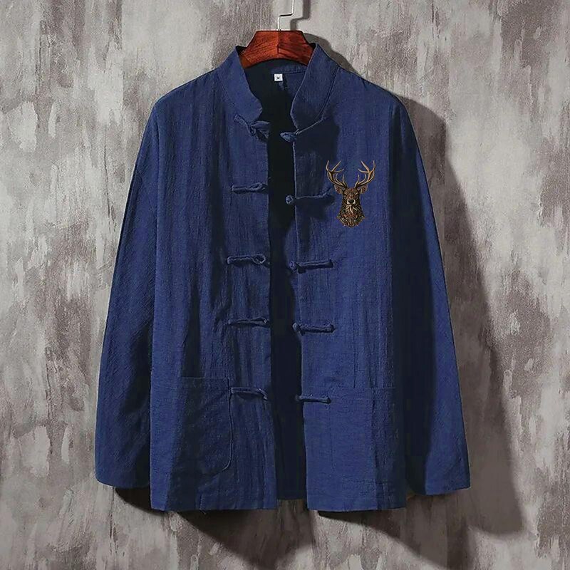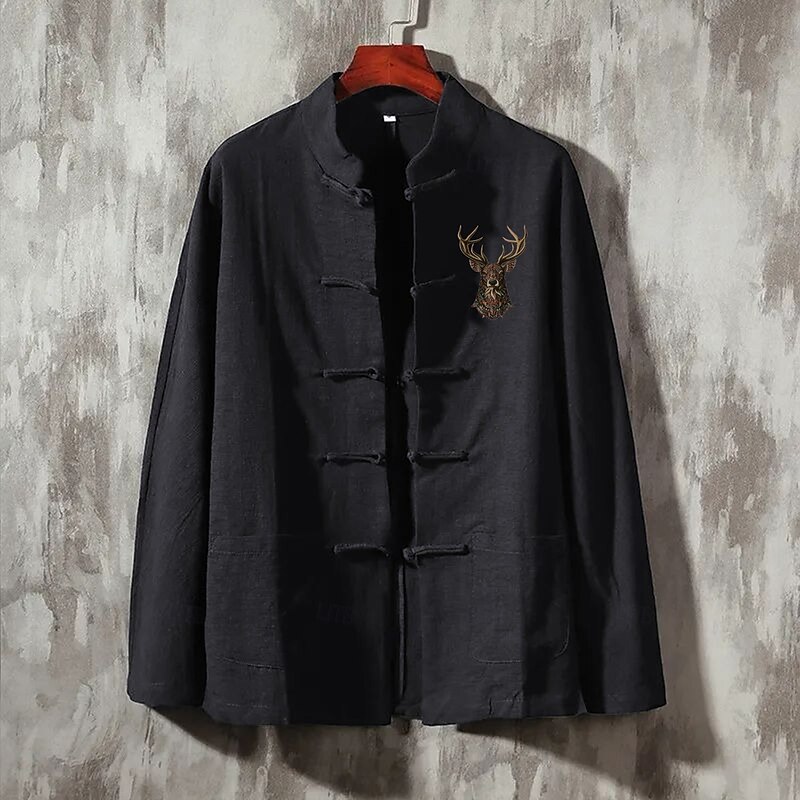 More information about Men's Linen Shirt Casual Shirt Button Up Shirt Reindeer Vacation Street Black White Dark Navy Beige Long Sleeve Band Collar Spring & Summer Clothing Apparel Pocket