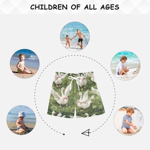 Pigsaly Boys' Swim Board Shorts Watercolor Pink Bows White Goose Boy's Swim Trunks Kids Swimwear S 2