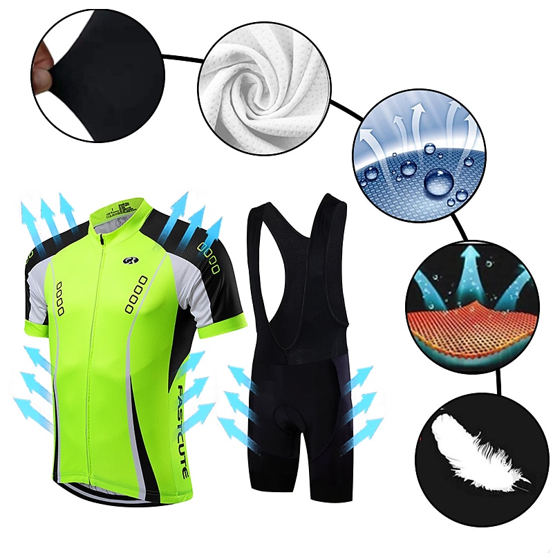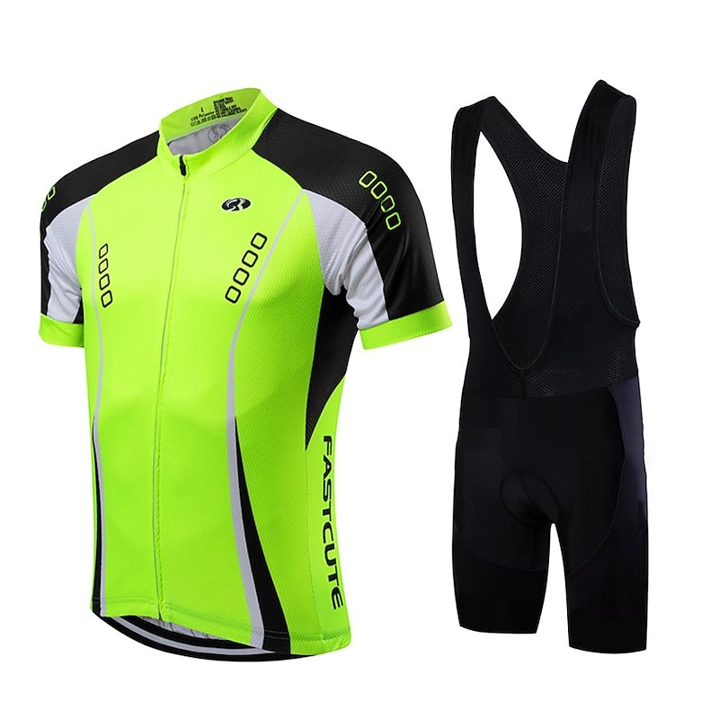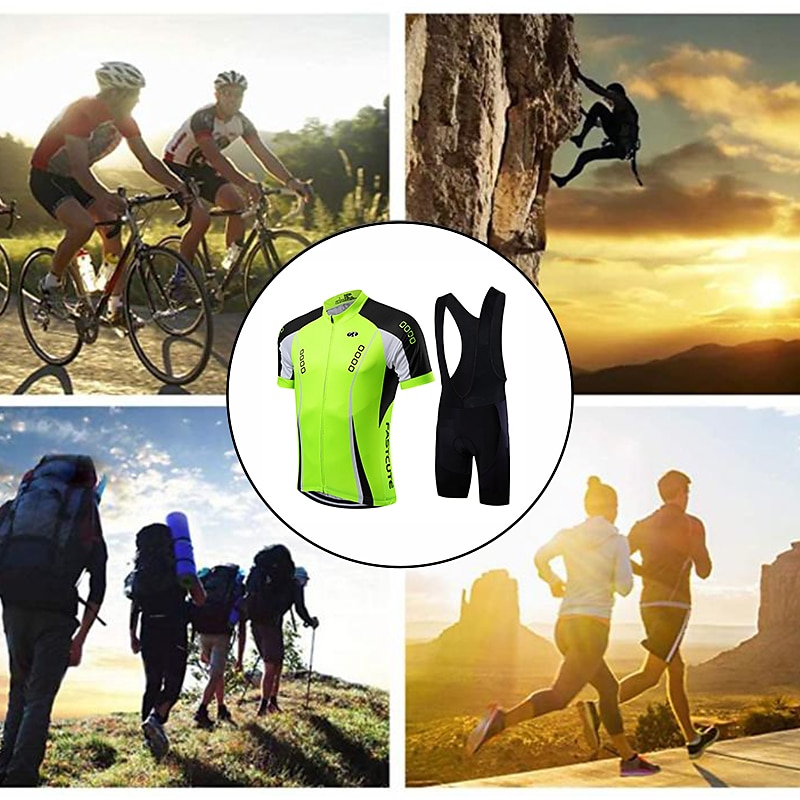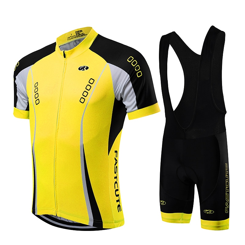 More information about Men's Cycling Jersey with Bib Shorts Short Sleeve Mountain Bike MTB Road Bike Cycling Fall Yellow Light Green Red Bike Clothing Suit Breathable Quick Dry Back Pocket Lycra Sports Patterned Clothing