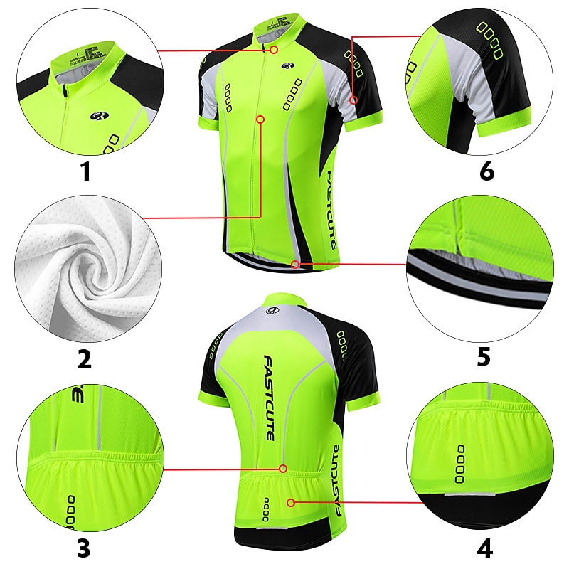 Men's Cycling Jersey with Bib Shorts Short Sleeve Mountain Bike MTB Road Bike Cycling Fall Yellow Light Green Red Bike Clothing Suit Breathable Quick Dry Back Pocket Lycra Sports Patterned Clothing 6