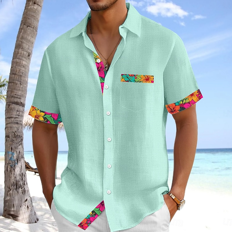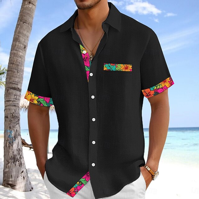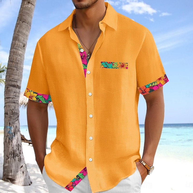 More information about Men's Shirt Linen Shirt Summer Shirt Beach Wear Button Up Shirt Solid Color Vacation Curise Black White Orange Green Short Sleeve Collar Summer Spring & Summer Clothing Apparel Color Block