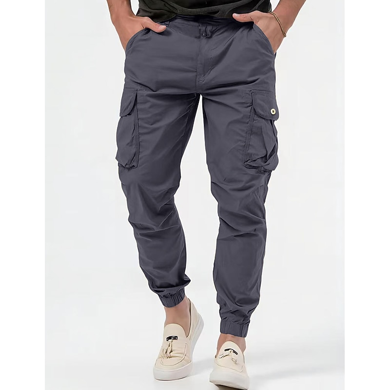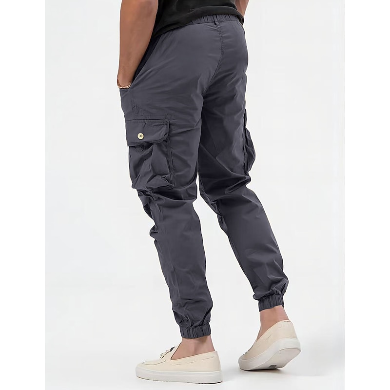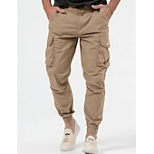 The cargo pants boast multiple spacious pockets, offering sufficient storage to carry essentials conveniently. The elastic waistband with a drawstring ensures an adjustable and secure fit, while the plain pattern adds a classic touch. Available in colors like Black, Army Green, Gray, and Khaki, they appeal to diverse style preferences.