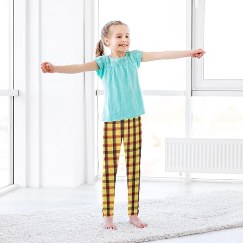 Checkered Yellow Girls Leggings,Workout Leggings for Girls Toddler Athletic Legging Size for 3-10T 2