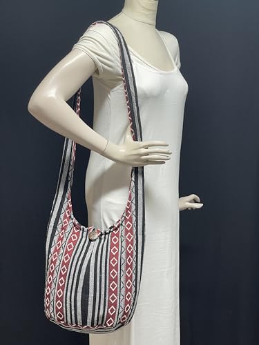 • ADD A TOUCH OF BOHO CHIC TO YOUR WARDROBE WITH THIS HIGH-QUALITY AZTEC BAG. Crafted from cotton loom-style embroidery, this stylish Thai hobo bag is lightweight, strong, and durable - perfect for everyday use. Plus, each bag was crafted by hand with love and attention by our partner seamstress, and we proudly support her family business with Fair Trade as our guiding principle.