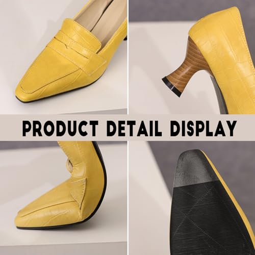 • 💕 [Heel Height]: comfortable 2.2in/5.5cm stacked kitten heel. white, yellow, apricot, purple, blue, brown, black loafer pumps for women dressy. these low heel loafers are suitable for women of any age.
