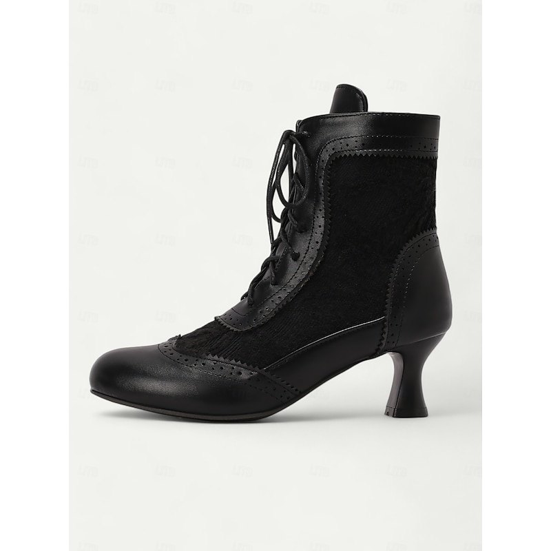 Victorian Style Women's Ankle Boots with Lace Design and Faux Leather Accents – Vintage Lace-Up Footwear for Casual and Costume Occasions 1