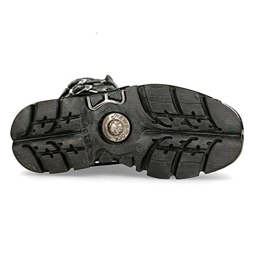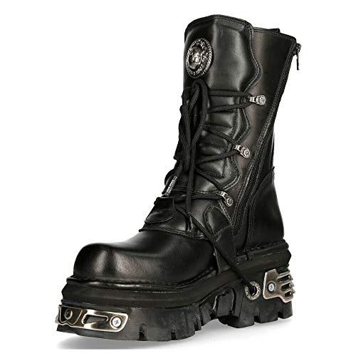 New Rock Unisex M.373-S4 Metallic Black 100% Leather Goth Biker Emo Fashion Reactor Boots 6