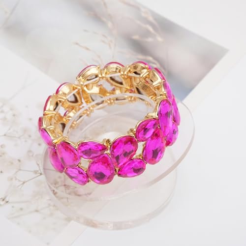 More information about Austrian Teardrop Crystal Bracelet Elastic Stretch Bangle Bracelet for Bride Art Deco Elegant Party Wrist Jewelry for Woman #BA005