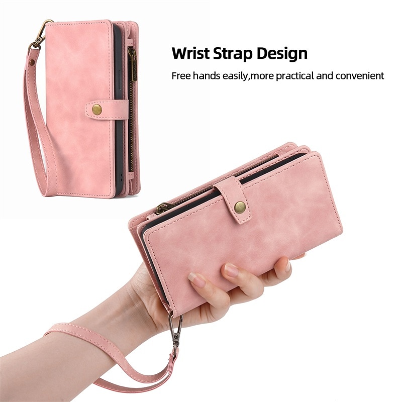 More information about Phone Case For iPhone 15 14 Pro Max Plus 13 12 11 Pro Max Wallet Case with Stand Holder Magnetic Zipper Solid Color PU Leather