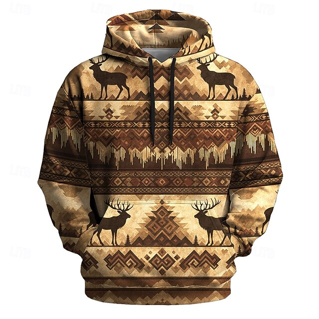 More information about Men's Bandana Print Cowboy Hoodie Sweatshirt Ethnic Vintage Retro Crew Neck Outdoor Home Streetwear Brown Drawstring Fall Winter Designer