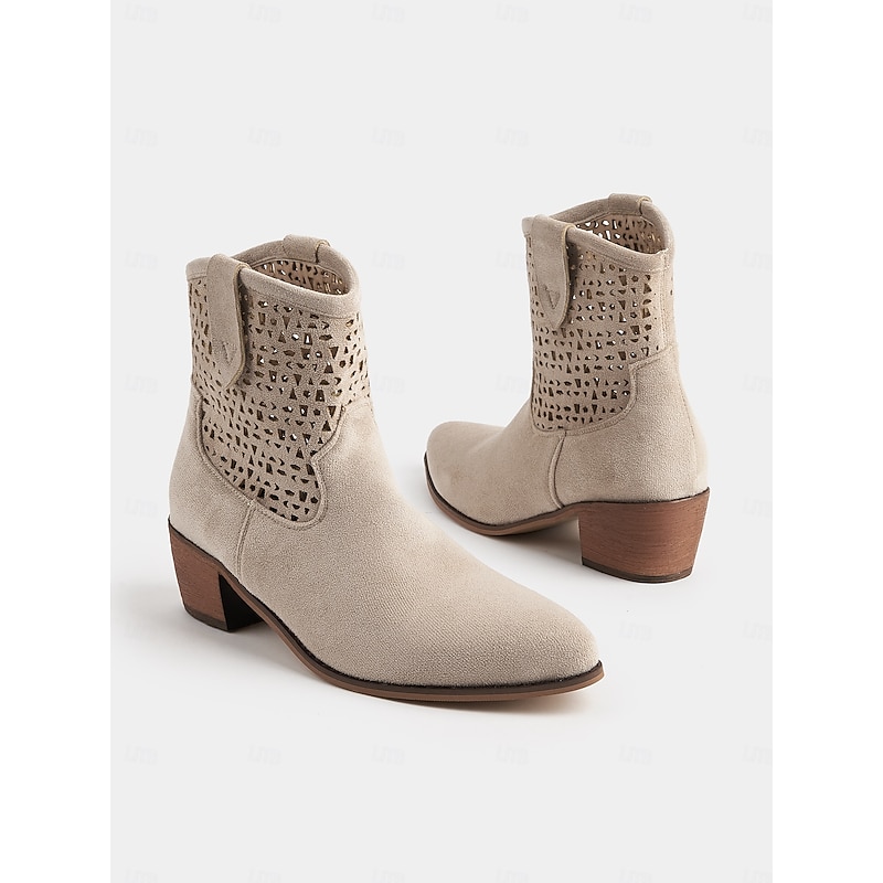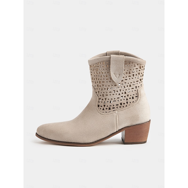 HOT ! Women's Almond Faux Suede Ankle Boots – Cutout Western Cowboy Booties with Low Block Heel for Fall Outfits, Farm Trips and Casual Weekend Outings