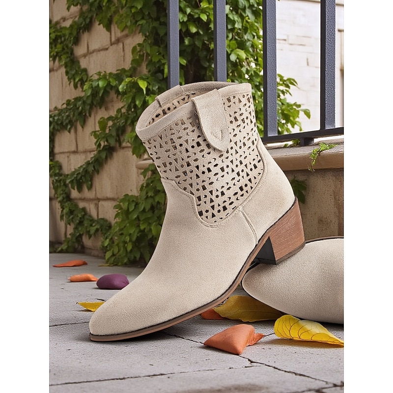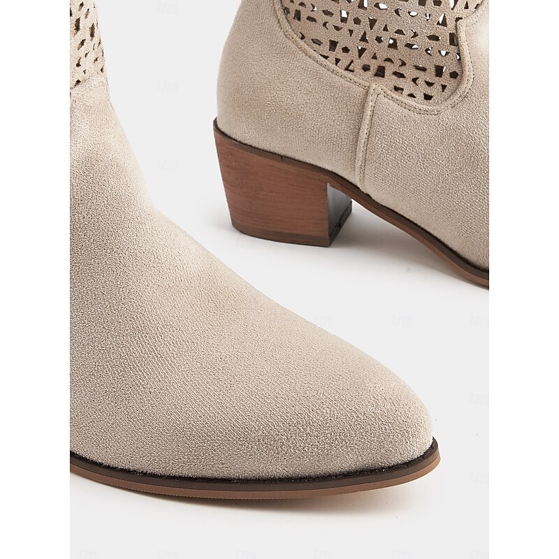 More information about Women's Almond Faux Suede Ankle Boots – Cutout Western Cowboy Booties with Low Block Heel for Fall Outfits, Farm Trips and Casual Weekend Outings