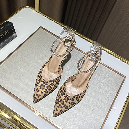 • The keleimusi Sweet Stiletto Pump features pointed toe, rhinestone-embellished stiletto heel, 3.34 inches [84mm] and rhinestone link ankle strap.