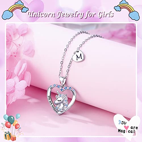 Hidepoo Unicorn Necklace for Girls Gifts - 14K White Gold Plated CZ Heart Pendant Unicorn Necklace Gifts Jewelry Letter Initial Unicorn Necklaces Unicorns Gifts Birthday Gifts for Girls Teen Girls 4