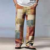 Men's Color Block Patchwork Pants Trousers Casual Pants Mid Waist Drawstring Elastic Waist Bohemian Vintage Retro Outdoor Vacation Straight Leg Trousers Spring Fall 3D Print Blue Orange 7
