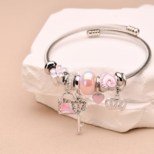 • 🌊Charm Bracelet Design🌊: Charm bracelets for Girl are a combination of high-quality stainless steel wire chains, cartoon alloy pendants, and crystal beads—a style that remains timeless regardless of wear. The charm beads are securely enclosed after the bracelet is fastened.