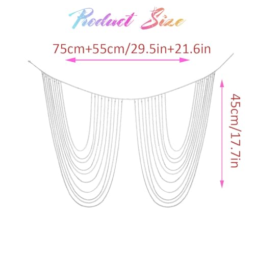 • Body chain jewelry for women size: 29.5+21.6IN/75+55CM. Weight: 136g. One size fits all-The length of the waist chain can be adjusted with the extended chain, so you can freely adjust the length. And it will be a perfect body chain for you. Available gold or silver color.