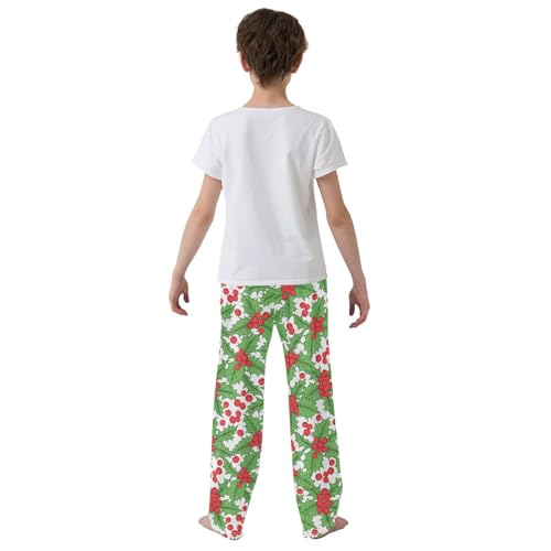 HOT ! Boys' Pants Holly Berry Leaf Christmas Long Bottoms Jogger Pants Elastic Waist Trousers with Pockets S-XL