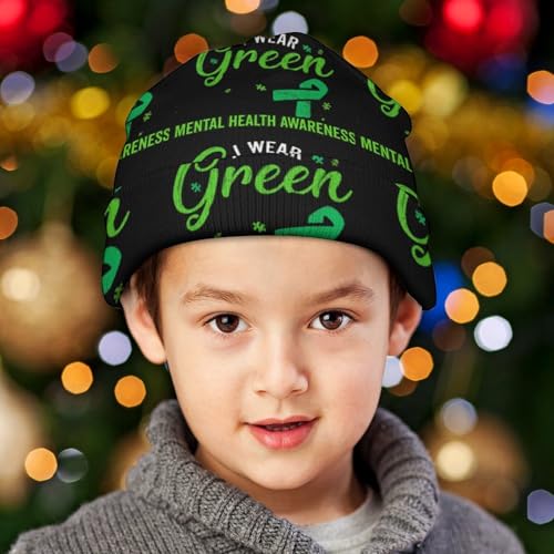 More information about in May We Wear Green Mental Health Awareness Month Kids Beanie Hat for for Girls Boys Children Cap Winter Knitted Chemo Cancer Headwear Accessories Gifts Decoration