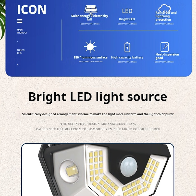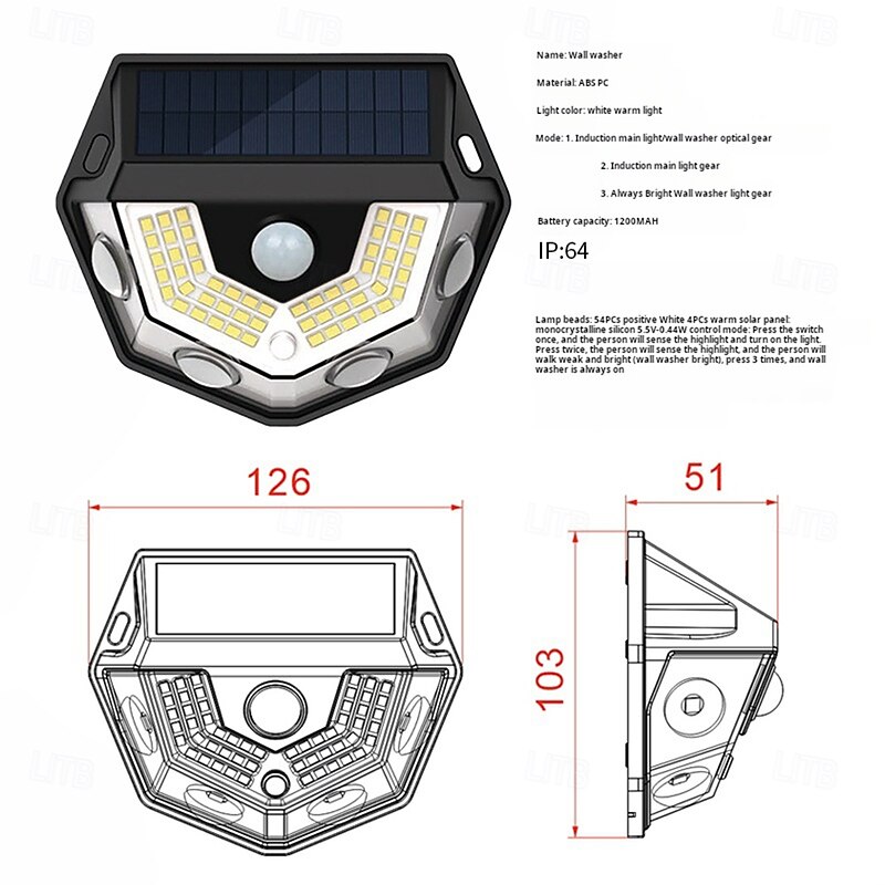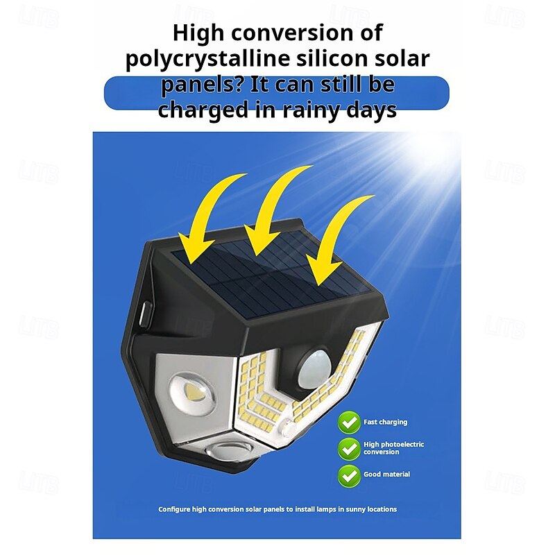 More information about 1 Pc Outdoor Solar Waterproof Wall Light 58 Led Beams Courtyard Porch Garage Garden Lighting Three Modes Intelligent Human Body Sensing Light Up And Down Wall Lights