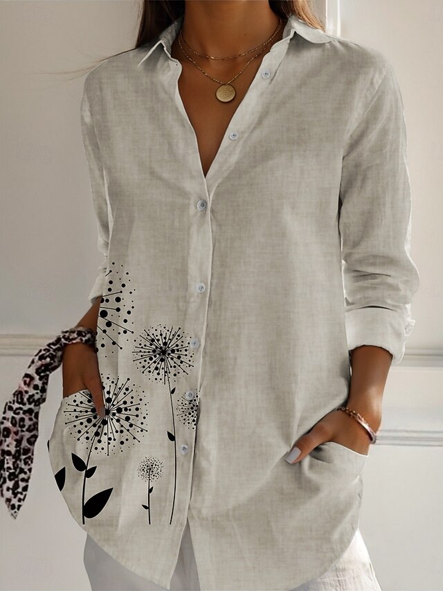 More information about Women's Linen-Inspired Shirts Floral Active Daily Stylish Long Sleeve Shirt Collar Regular Tops Daily Holiday Buttons Print Beige Spring Fall