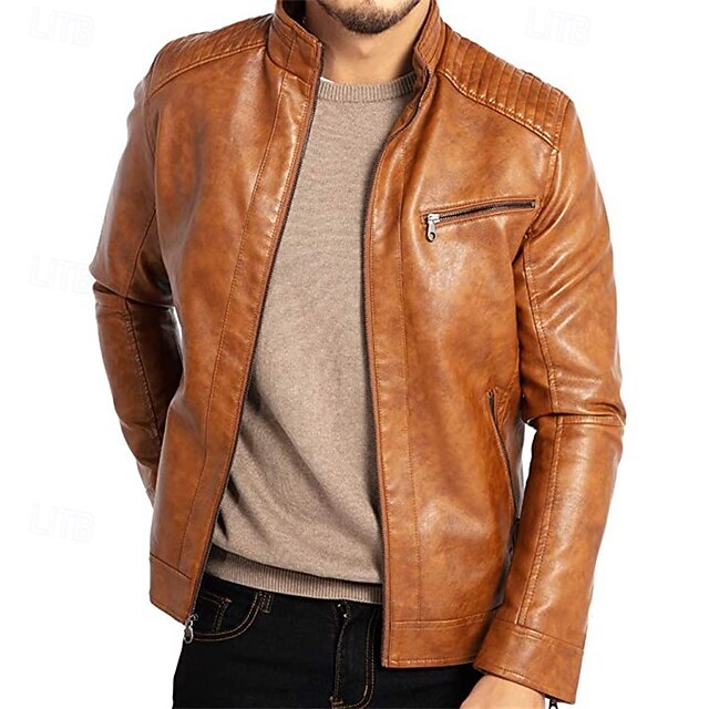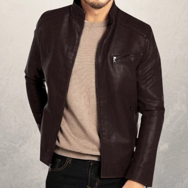 Crafted from high-quality faux leather, this men's jacket offers the richness of real leather combined with enhanced durability and ease of maintenance. It effectively provides windproof and warm functionality, making it suitable for the chillier months of fall and winter.