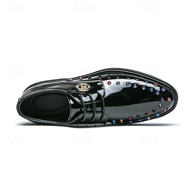 Men's Gold Patent Faux Leather Dress Shoes - Studded Rhinestone Lace-Up Design for Parties, Weddings and Stage Performances 6