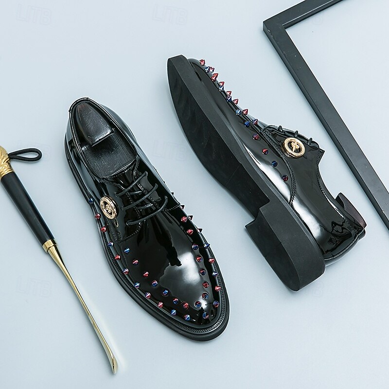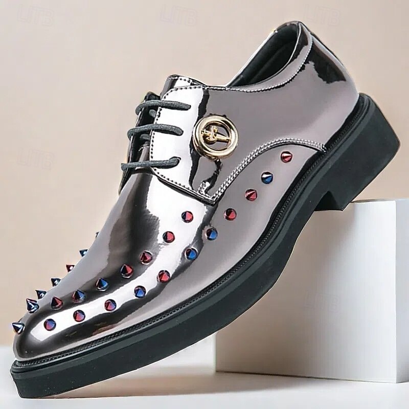 More information about Men's Gold Patent Faux Leather Dress Shoes - Studded Rhinestone Lace-Up Design for Parties, Weddings and Stage Performances