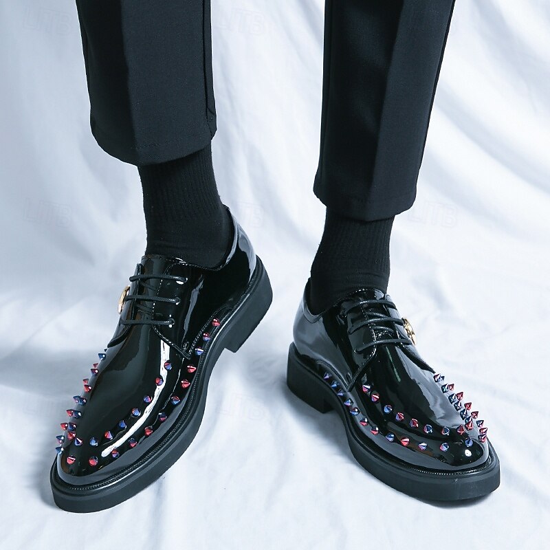 Men's Gold Patent Faux Leather Dress Shoes - Studded Rhinestone Lace-Up Design for Parties, Weddings and Stage Performances 25