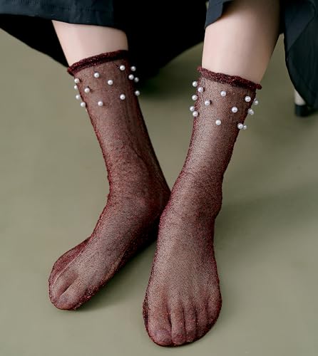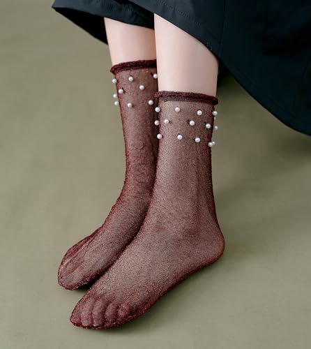 More information about Women's Glitter Metallic Mid-Calf Socks, Shimmer Sparkly Shiny Party Sheer Socks Size 5-9