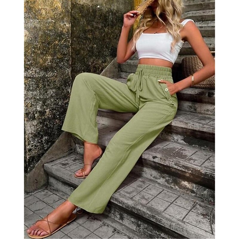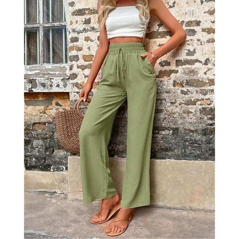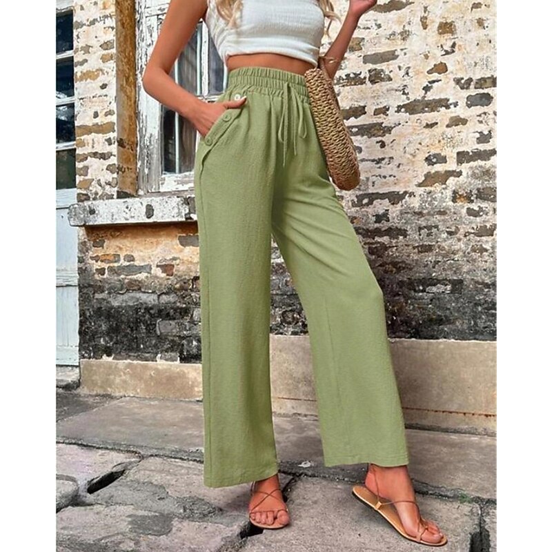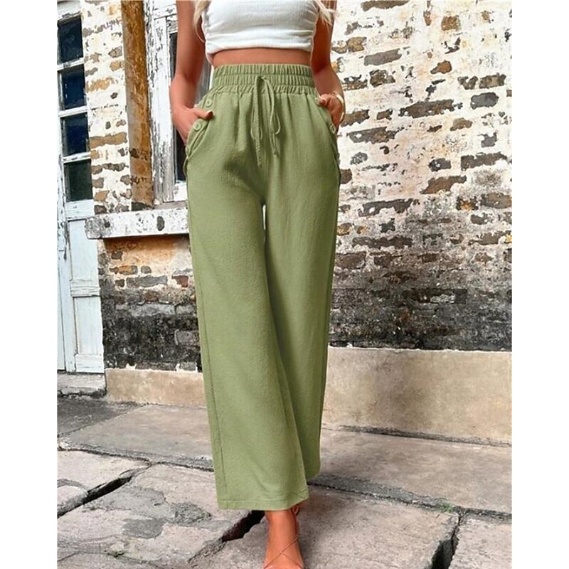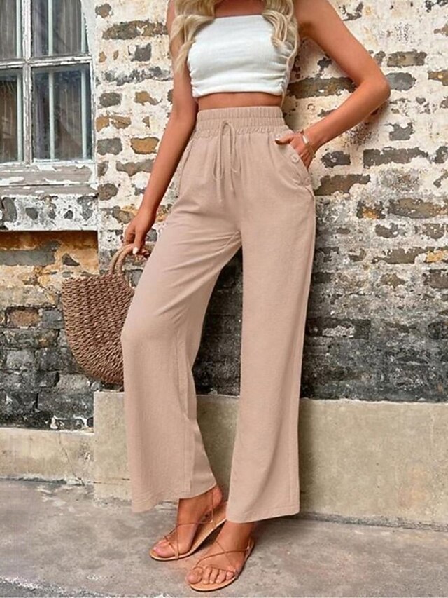 Women's Cotton Linen Shorts Linen-Inspired Pants Cotton Linen Pants Fashion Streetwear Comfort Full Length High Waist Plain Drawstring Elastic Waist Straight Leg Comfy Outdoor Comfortable Street 15
