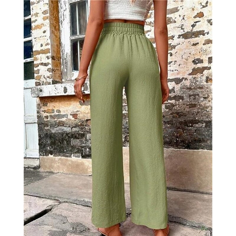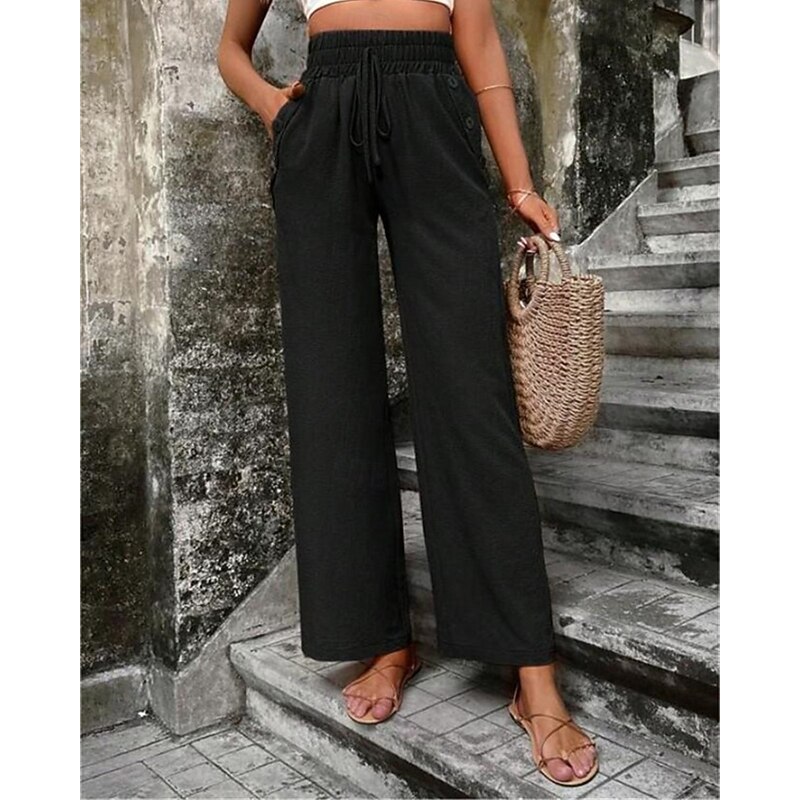 More information about Women's Cotton Linen Shorts Linen-Inspired Pants Cotton Linen Pants Fashion Streetwear Comfort Full Length High Waist Plain Drawstring Elastic Waist Straight Leg Comfy Outdoor Comfortable Street