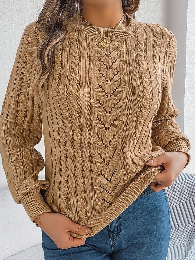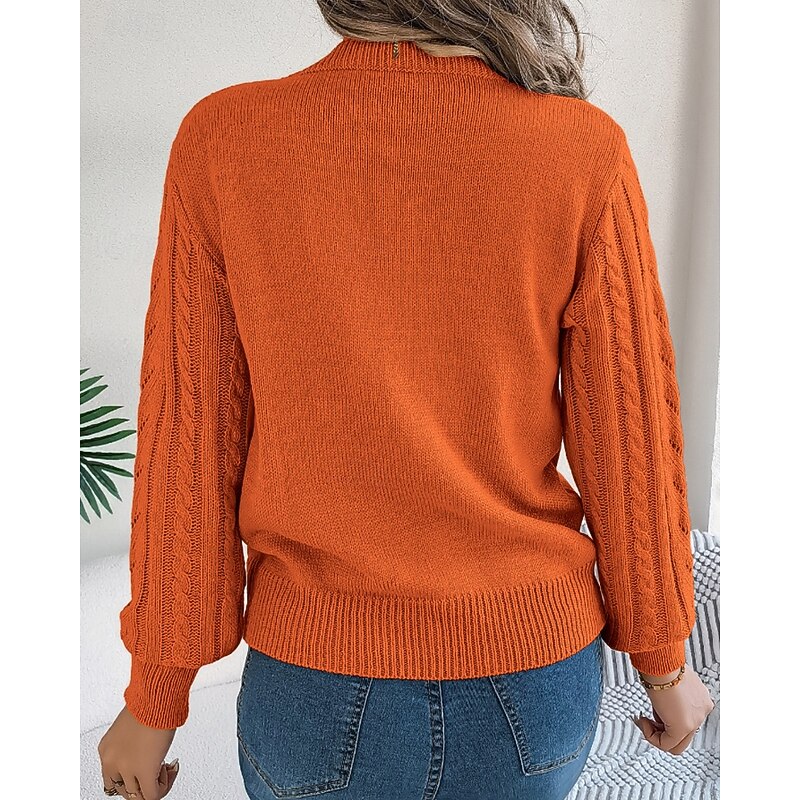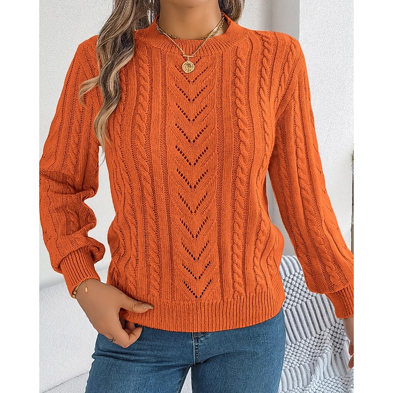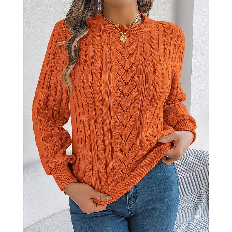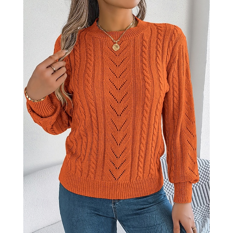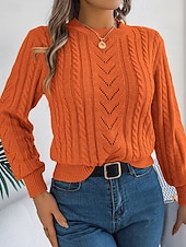 More information about Women's Sweater Pullover Streetwear Casual Pure Color Crew Neck Knitted Long Sleeve Regular Tops Knit Daily Holiday Weekend Orange Khaki Fall Winter