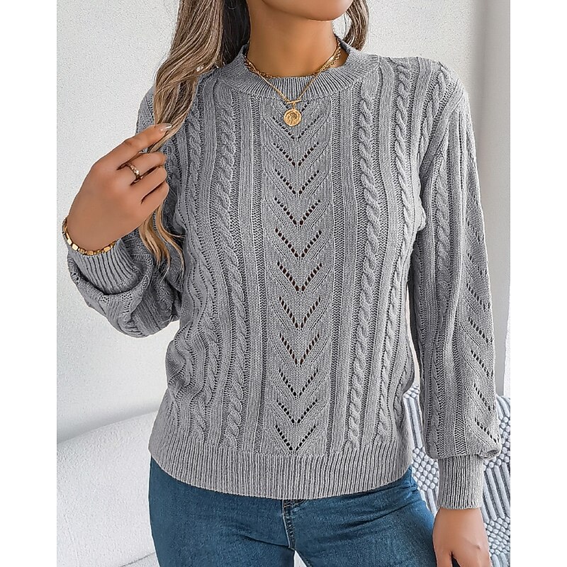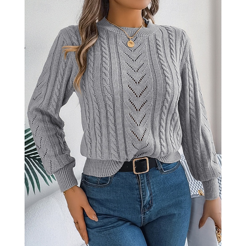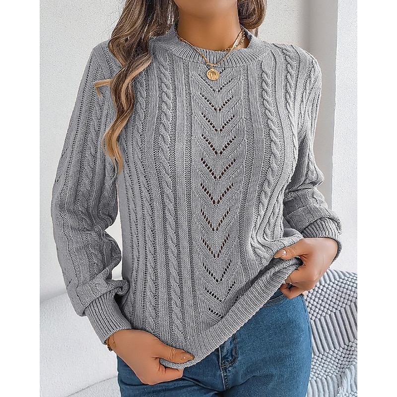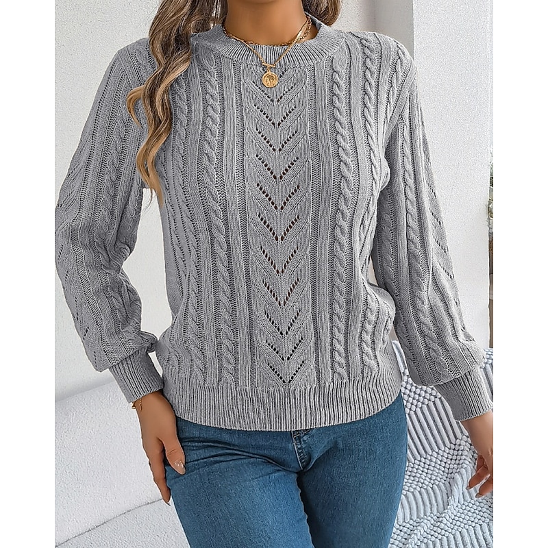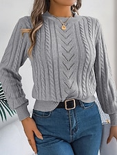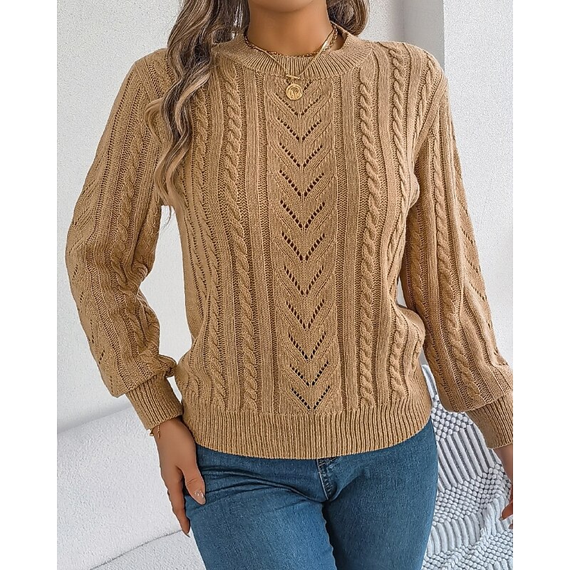 More information about Women's Sweater Pullover Streetwear Casual Pure Color Crew Neck Knitted Long Sleeve Regular Tops Knit Daily Holiday Weekend Orange Khaki Fall Winter