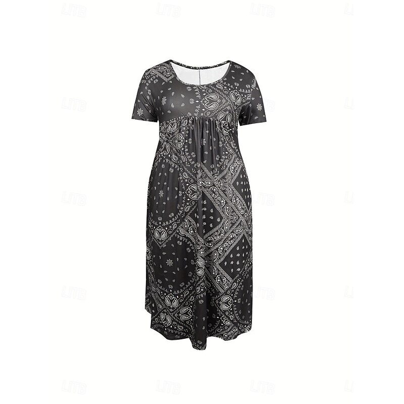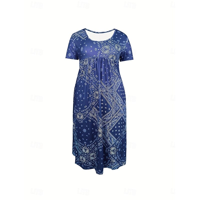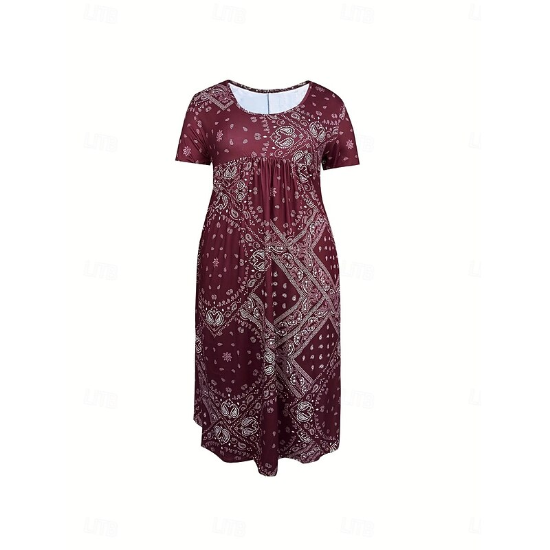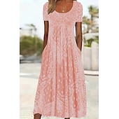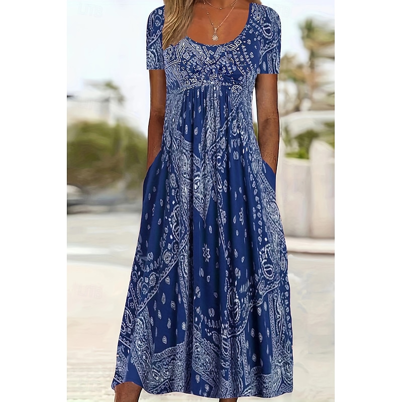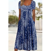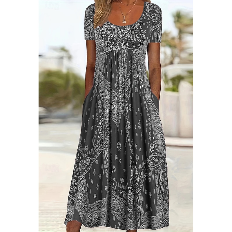 More information about Women's Midi Dress A Line Dress Summer Dress Casual Daily Regular Fit Paisley Short Sleeve Square Neck Pink Red Blue Gray Summer