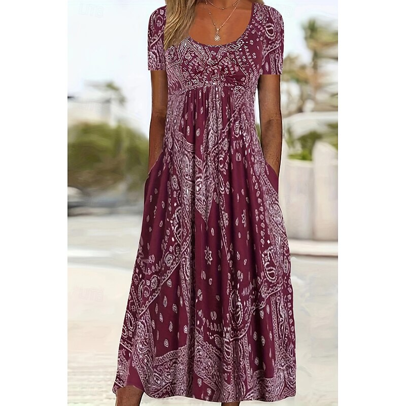 HOT ! Women's Midi Dress A Line Dress Summer Dress Casual Daily Regular Fit Paisley Short Sleeve Square Neck Pink Red Blue Gray Summer